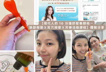 上週因閨密推薦,我和他一起去上了一門【現代人的 10 分鐘舒壓養顏術-臉部撥筋X耳穴按摩X芳療活絡課程】,當天晚上撥筋及耳穴按摩課,整個臉變得好緊緻,上課學習的過程也很舒壓,回到家也睡了舒服的一覺,現在就讓我來跟你分享這堂臉部撥筋課的體驗心得吧~ ▼課程開始前,老師已經將教材、純露和精油都放在課堂學習的桌上,而且還提供每人一支撥筋棒給學員,真的超棒的!(課程中每個人都需要自備一個鏡子,這樣上課可以 […]