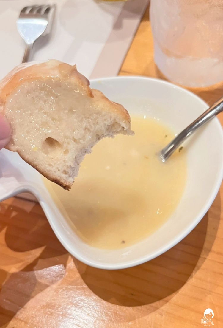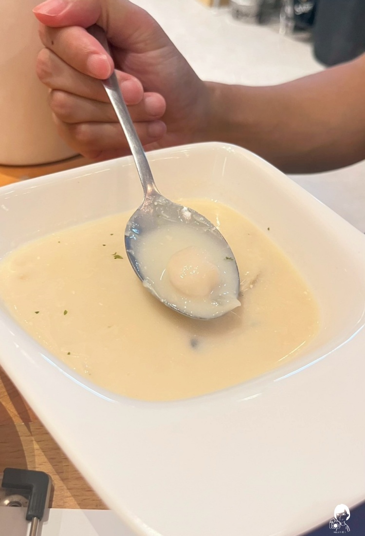 主廚濃湯每一口都很濃郁,湯裡面也有好吃的配料,很適合配麵包一起享用。