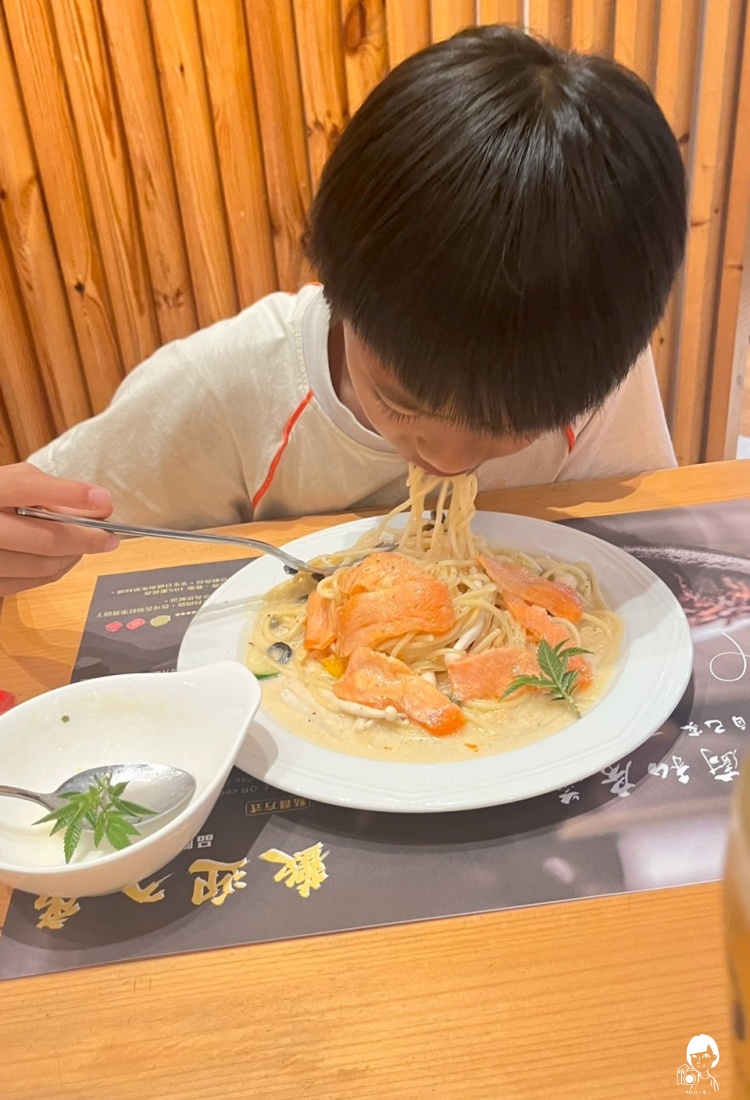 新鮮美味的鮭魚,鋪在奶油白醬的天使細麵上,光看道就讓人食指大動~Q彈軟嫩的鮭魚搭配沾滿白醬的天使細麵,讓孩子吃得好開心又滿足 (◍˃̶ᗜ˂̶◍)✩