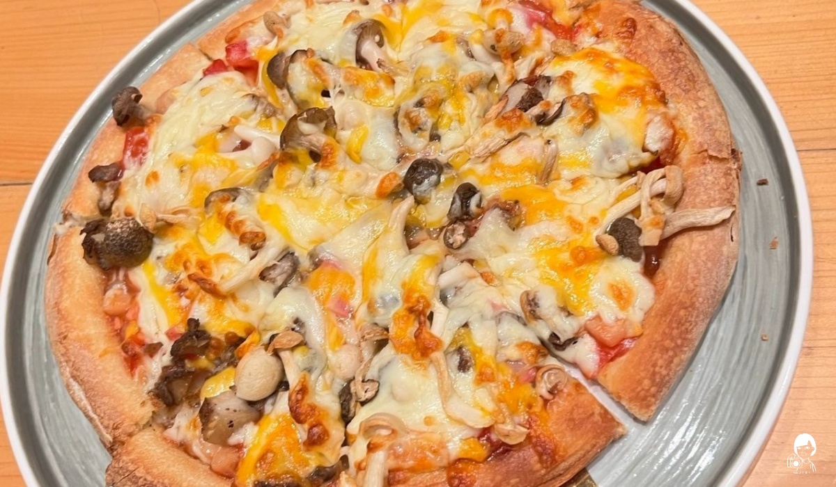炙豬主要是以鹹豬肉為主要基底,搭配香菇和洋蔥以及多層次的起司,品嚐起來好過癮~~好果實披薩主要是厚餅皮,蓬鬆軟嫩的餅皮,也很美味好入口哦:)