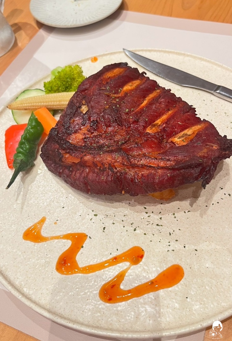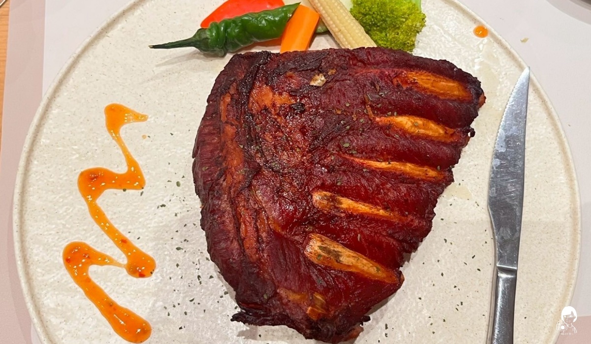 戰斧豬排一個人吃完會很有飽足感,戰斧豬排的肉吃起來外面好酥脆,肉質軟嫩而且好入口,想吃排餐也想來點酥脆彈牙的肉肉大餐,這道料理推薦給你 (〃’▽’〃)