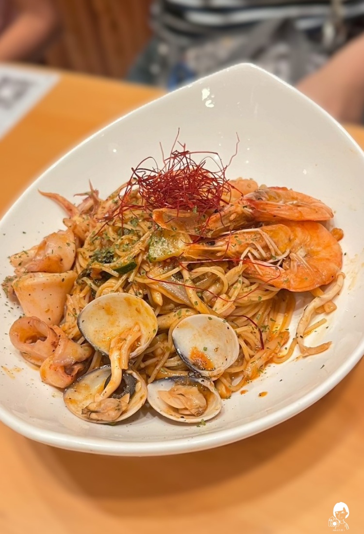 炎炎的夏日很適合來道煙花女海鮮天使細麵,這料理採義大利麵中最細的用天使細麵,又稱髮絲麵,搭配番茄清爽可口微辣的醬汁,讓人一口接著一口品嘗,料理包含透抽、蛤蠣、鮮蝦還有干貝等多種美味海鮮,讓人吃了好滿足!