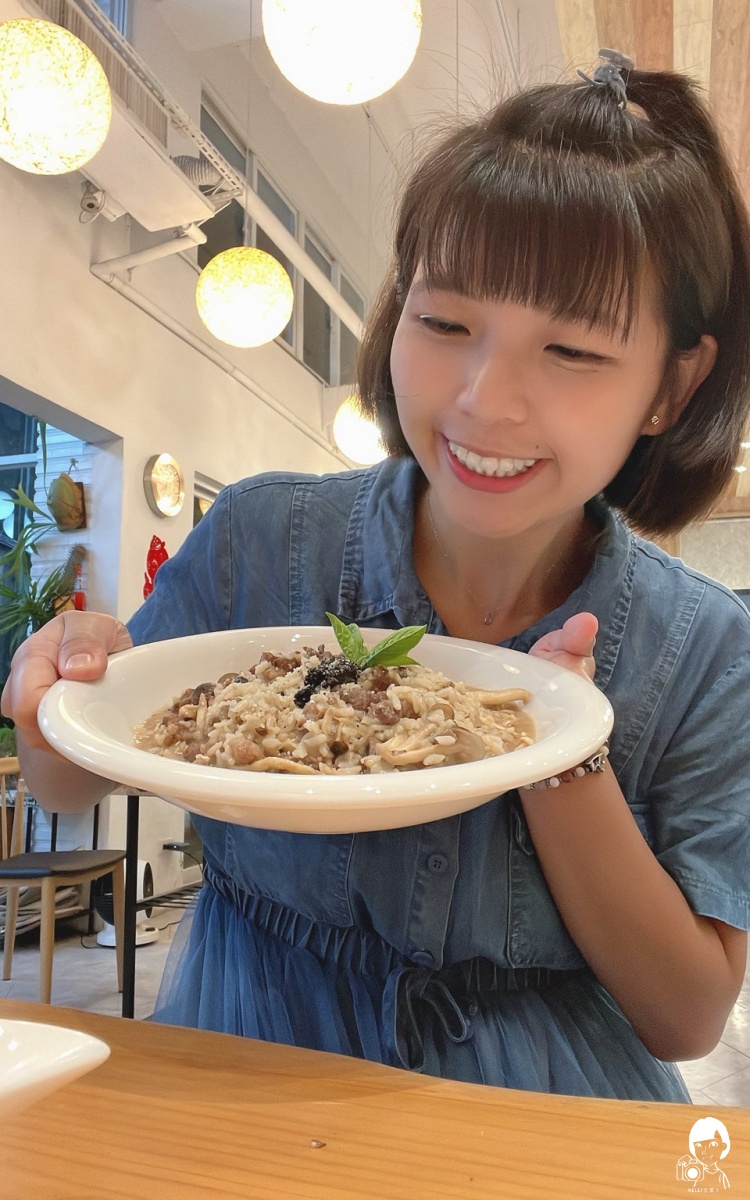 現切新鮮牛肉,搭配義大利牛肝菌和菌菇,透過小火慢慢燉煮後再拌上黑松露,一口吃下去讓人好驚喜,牛肉的部分比較有嚼勁,不過如果本身愛吃牛肉和菇類的話,這道料理也值得你好好品嚐一番 (˶˚ ᗨ ˚˶)