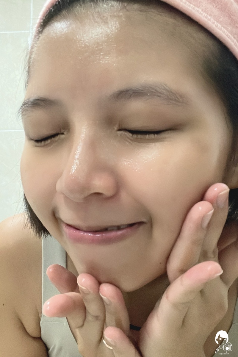 洗卸完的肌膚也不會乾癢,反而有肌膚在深呼吸的舒適清爽感,洗完臉後的肌膚真的亮了一階呢:)