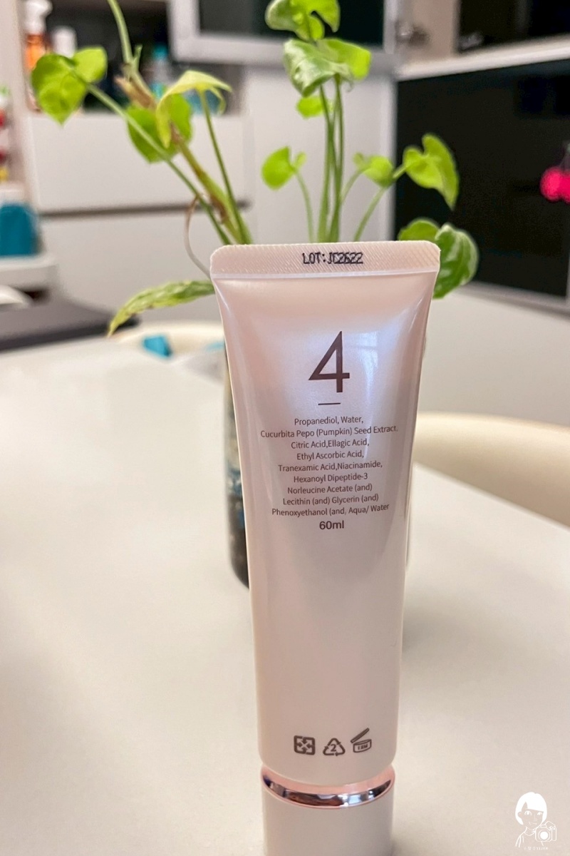 ▼【4激光淨白精華霜】具有讓肌膚恢復透亮光澤的特色,也能幫助肌膚改善暗沉,膚色更加均勻好看;若你跟我一樣也很想要淡化肌膚較為暗沉的部分,這款保養品可以適量地使用哦。