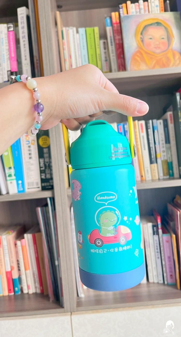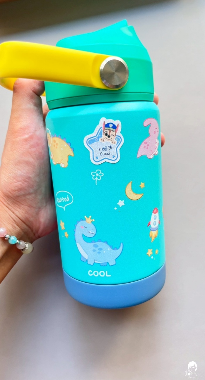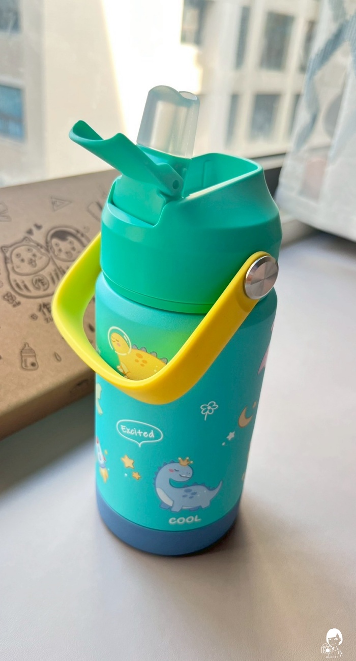 打開看到這款【可愛兒童專用保溫瓶:恐龍家族-繽紛環繞版】時,我們都覺得好繽紛又可愛,好握的小手提設計、隱藏式吸嘴口,不怕用髒、外型設計很童趣又能客製化,很適合給小朋友使用。