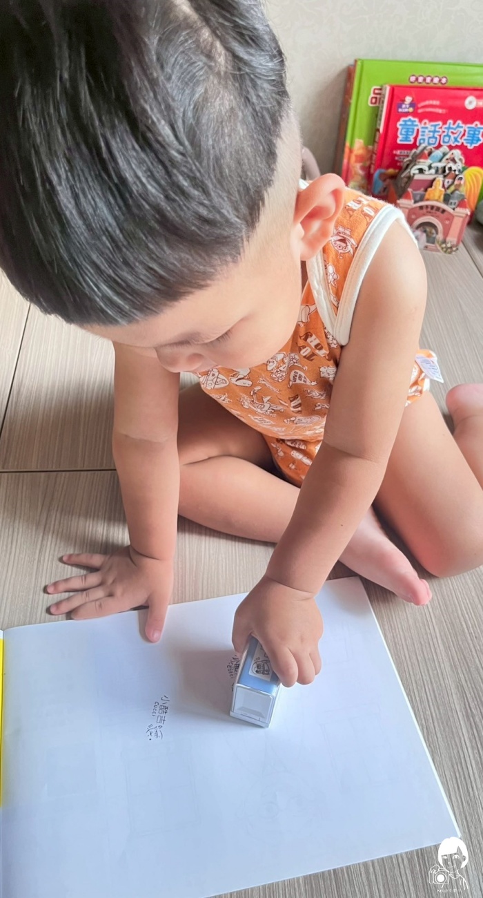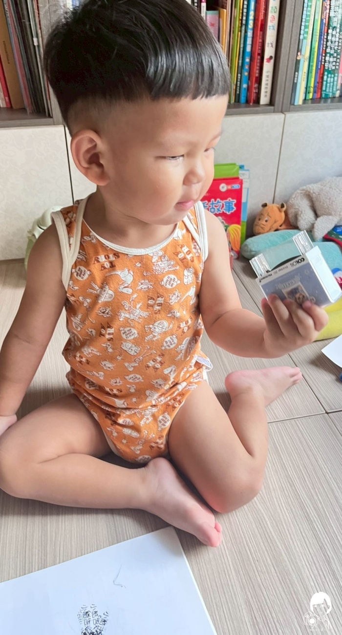 ▼酷吉也好喜歡這款衣物專用防水印章,拿起來自己蓋印章時,笑得好開心:D
